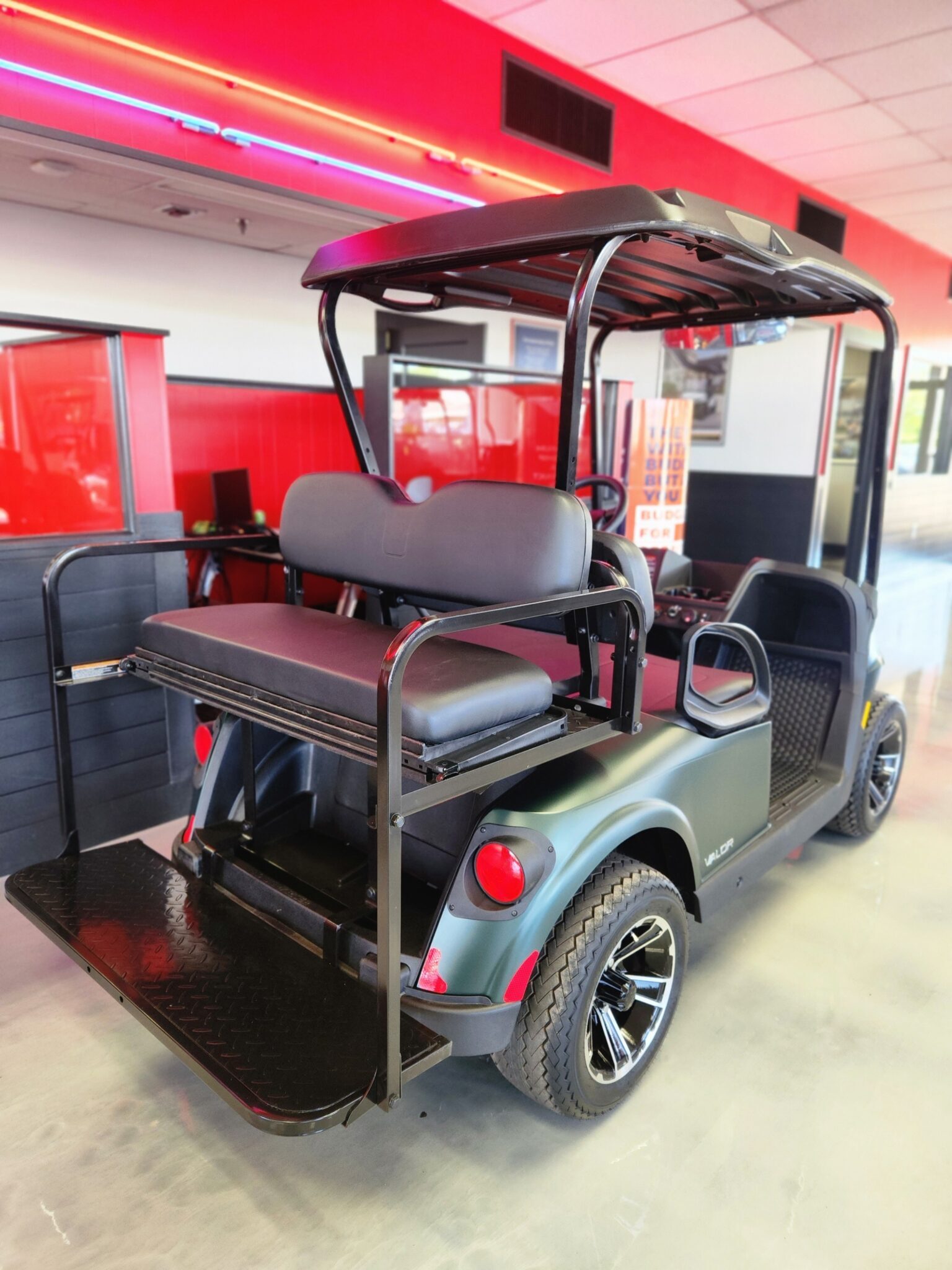 - Flip Down Back Seat with Upgraded Arm Rests and Safety Grab Bar